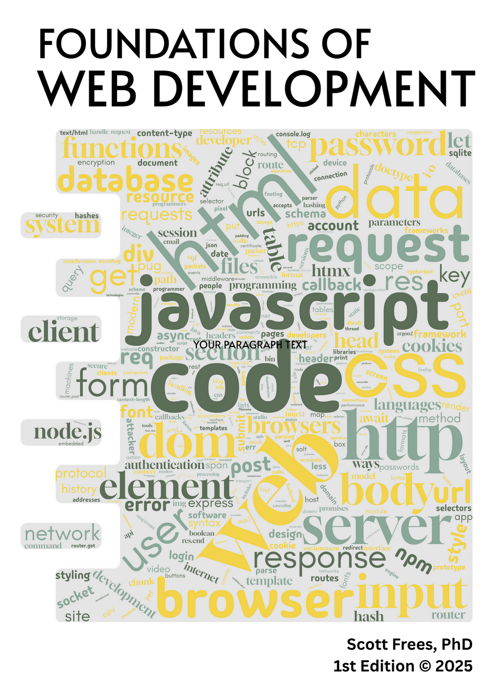 Written for college students, instructors, and professional developers alike, Foundations of Web Development takes a pedagogically sound, hands-on approach to learning how the web actually works, from the ground up. You’ll begin with the fundamentals: internet protocols, TCP/IP, sockets, and HTTP. From there, you’ll build up a working knowledge of web standards like HTML and CSS, and then dive into backend programming using JavaScript in the Node.js runtime - not because it's the only option, but because it minimizes language overhead and maximizes focus on the architecture and ideas that matter.